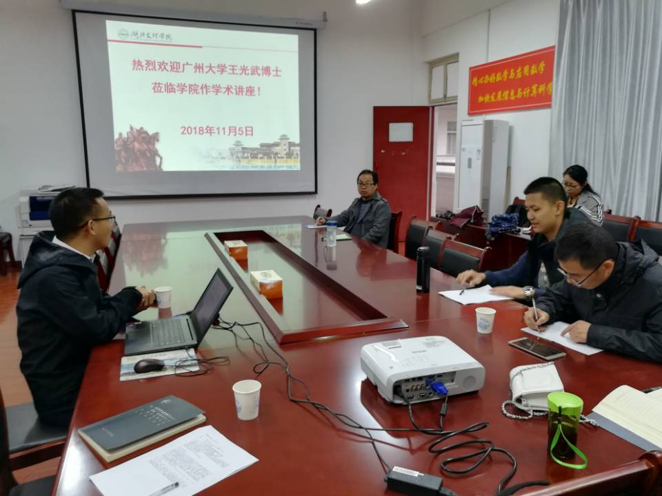 (william威廉英国官网 通讯员 肖氏武)应william威廉英国官网邀请,2018年11月5日上午9:30,广州大学数学与信息科学公司王光武博士做客隆中讲坛,为公司师生作了题为《关于量子流体力学模型解爆破的若干结果》的学术报告。报告会由william威廉英国官网副经理丁凌教授主持。