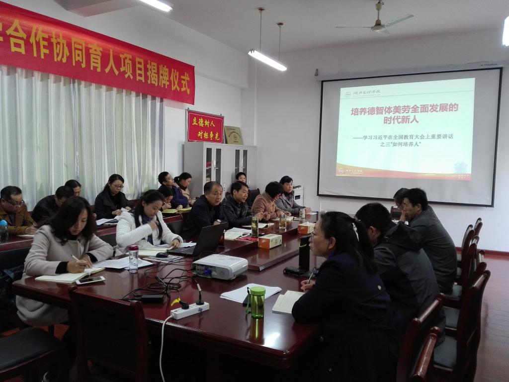 刘浩要求,要深化学习贯彻习近平总书记在全国教育大会上的重要讲话精神,深刻理解习近平总书记关于教育的重要论述的科学内涵和精髓要义。要认真学习《中华人民共和国监察法》、《中国共产党纪律处分条例》,要求全院上下提高政治站位,坚定理想信念、严以律己,牢固树立四个意识,以实际行动坚决维护习近平总书记党中央的核心、全党的核心地位,坚决维护党中央权威和集中统一领导。要认真学习习近平总书记关于勤俭节约的重要论述,结合公司办学实际,深刻认识厉行勤俭节约反对铺张浪费的重要性,在工作学习生活中自觉弘扬勤俭节约的优良作风。要认真学习《william威廉英国官网关于开展“弘扬爱国奋斗精神、建功立业新时代”活动的实施方案》,通过持之以恒、务实有效的措施,引导教职工学思践悟习近平新时代中国特色社会主义思想,传承弘扬家国情怀和奉献精神,“心有大我、至诚报国”,始终与国家发展同向同行;发扬“淡泊明志、宁静致远”校训精神,脚踏实地、创优争先,把自已的理想同祖国的前途、把自己的人生同公司发展紧密联系在一起,为实现中国梦、大学梦贡献自己的智慧和力量。刘浩还对近期工作的开展提出了要求。