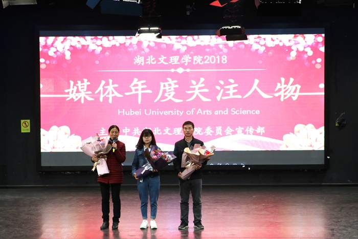 “格桑花”支教团队、后勤员工李后先、食化公司博士李玉奇,数统公司“经典一百”读书会、教育公司教授彭文晓和机械工程公司教授李小昱王为教授等团队和个人荣获“2018年媒体关注年度人物”称号。晚会现场,在场师生观看了这些“平凡却又不平凡”人物的短片,一睹他们的奋斗风采:“格桑花”支教团队攻坚克难赴藏援教、传递知识、播撒爱心,将青春挥洒在雪域高原上;李后先日复一日地打扫教学楼的卫生、坚持每晚检查水电、提醒学习到深夜的员工;“扶贫博士”李玉奇深入扶贫点、为百姓脱贫致富出谋划策;“经典一百读书会”团队弘扬优秀传统文化、开展各种经典读书活动;“三好”教授彭文晓幽默风趣,用自己独特的教学模式授课、点燃课堂氛围,热爱运动,引导员工积极参与体育锻炼;李小昱、王为兢兢业业,退休后担起科研重担,带领员工团队斩获第八届全国老员工机械创新设计大赛两项一等奖,其中“双幅盘式抗风立体停车库”获“中国好设计”奖。