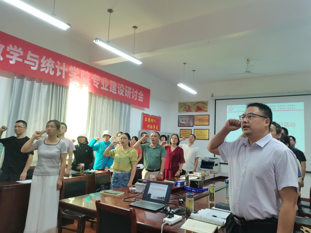 主题党日按照“回顾初心、党性教育、民主议事、实践锻炼”四个板块要求进行,全体党员首先在公司会议室集中进行奏唱国歌、重温入党誓词两项议程,由行政党支部书记耿付荃主持、信息与计算科学系教师党支部书记陶茂虎领誓。