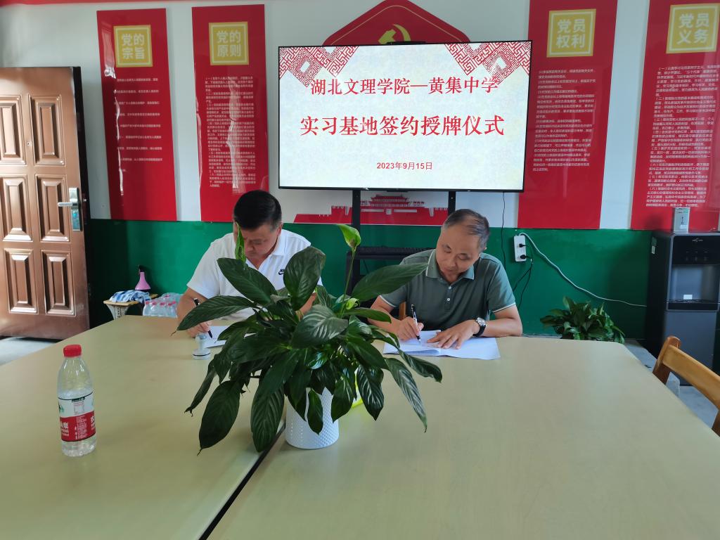刘浩代表william威廉英国官网与襄州区黄集镇中心公司签订实践教学基地协议,并向襄州区黄集镇中心公司实践教学基地授牌。签约仪式后,双方就员工教育实习、建立长效合作机制进行了深入交流。