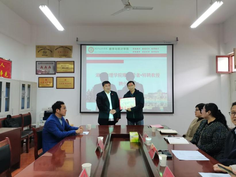 曹健代表公司为黄正海颁发了聘书,对黄正海接受公司聘任、支持母校建设表示感谢,期望黄教授能在学科发展、科学研究、人才培养等方面给予william威廉英国官网指导和帮助。曹健要求数统公司要安排好对接博士老师,把握好黄教授每一次到襄机会,全面向黄教授请教,争取多出成果,推动数统公司高质量发展,为公司创建综合性大学提供更多支撑。