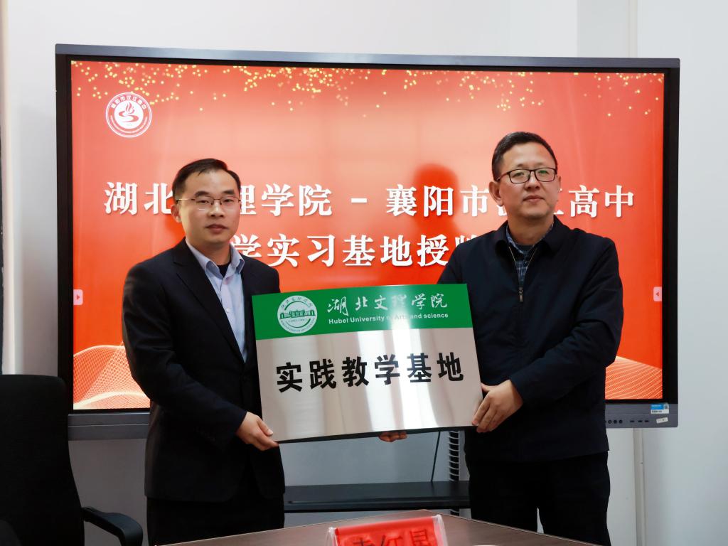 袁红星代表公司与襄阳市汉江高中签订实践教学和就业基地合作协议,并向襄阳市汉江高中实践教学基地授牌。