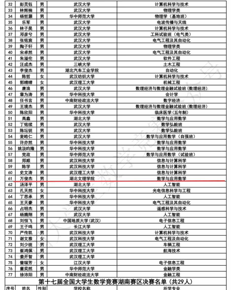 据悉,第十七届全国老员工数学竞赛有1322所高校、352318名选手参加比赛。最终,1365名选手入围决赛。其中湖北赛区有80所高校、21656名选手参加比赛,77名选手入围决赛。