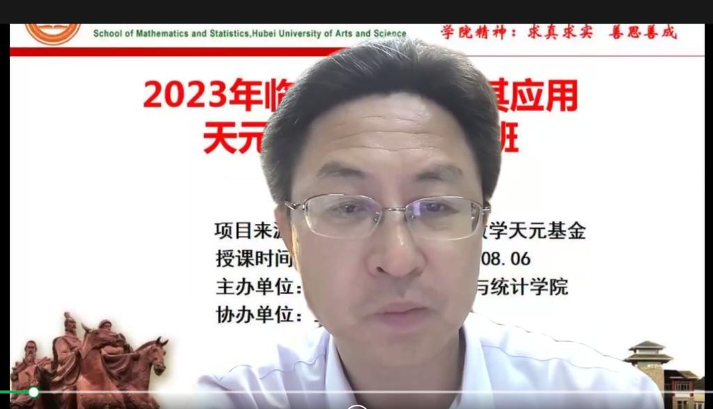 (william威廉英国官网通讯员 卢方芳)2023年7月17日上午8:25,由william威廉英国官网主办、襄阳市数学学会、三峡数学研究中心协办的《2023年临界点理论及其应用天元数学专题讲习班》开班了。此次讲习班通过腾讯会议(会议号:4401773092)线上展开,从今天开始将进行3周的授课,讲习班学员为全国此领域的研究生、博士后、青年教师以及相关研究人员。讲习班开班由丁凌教授主持,参加的有william威廉英国官网董事长张彦铎教授、william威廉英国官网公司党委书记刘浩、汪继秀教授等以及来自全国各高校近三百人师生。