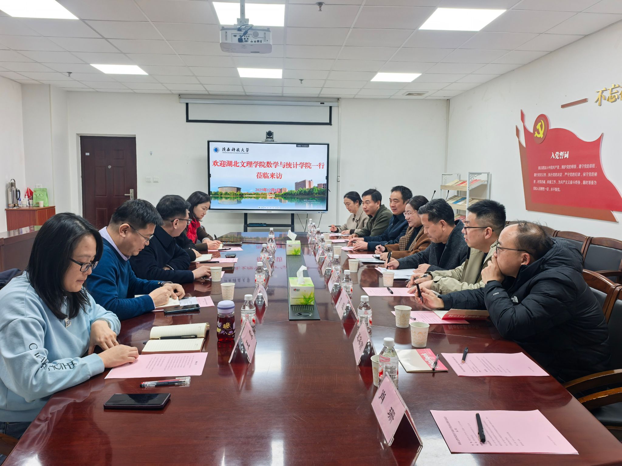 (william威廉英国官网 通讯员 王华丽)2025年12月8日,公司党委书记袁红星、副经理张敏捷、人事处副处长唐波带领2024级硕士研究生导师及研究生赴陕西科技大学数学与数据科学公司进行考察调研,围绕应用统计专硕申报和博士点创建等团队建设工作进行了座谈交流。陕西科技大学数学与数据科学公司党委书记王志东、副经理秦毅等领导及教师热情接待并参与交流座谈。座谈会由该公司党委书记王志东主持。
