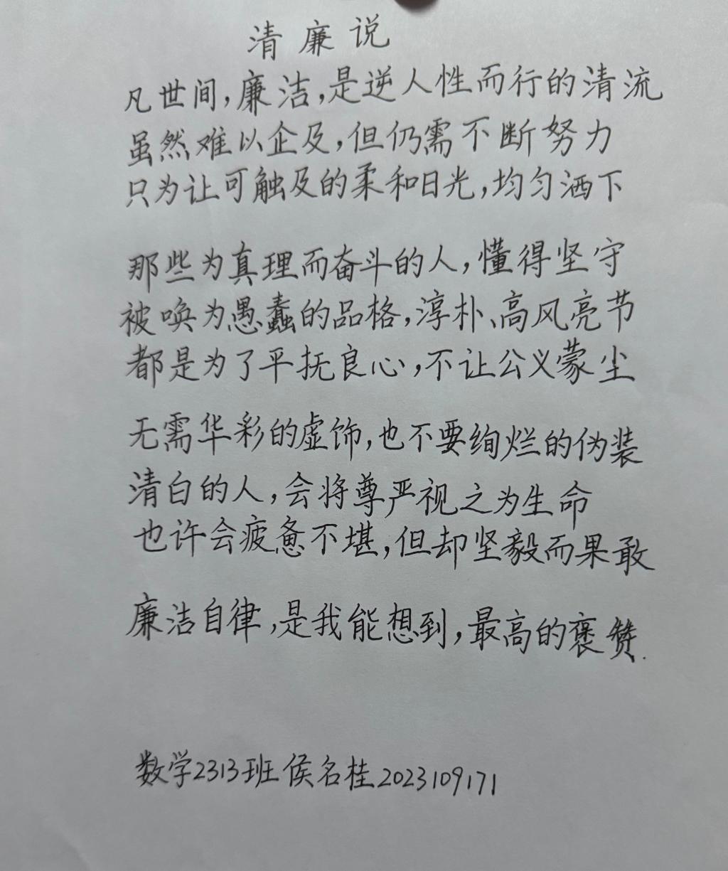 同学们的作品紧扣主题,内容积极向上,展现廉洁文化内涵与老员工的青春风采。他们以笔为剑,以墨为锋,在洁白的纸页上,挥洒对廉洁的尊崇与坚守。